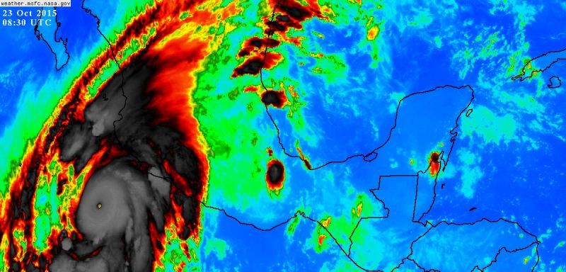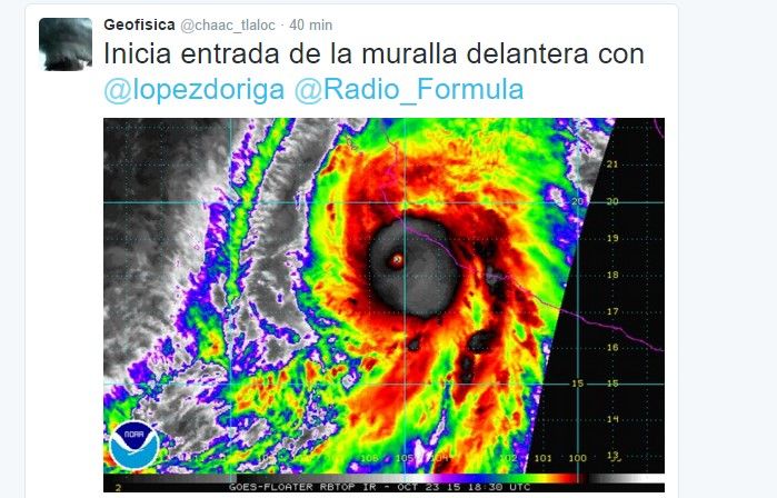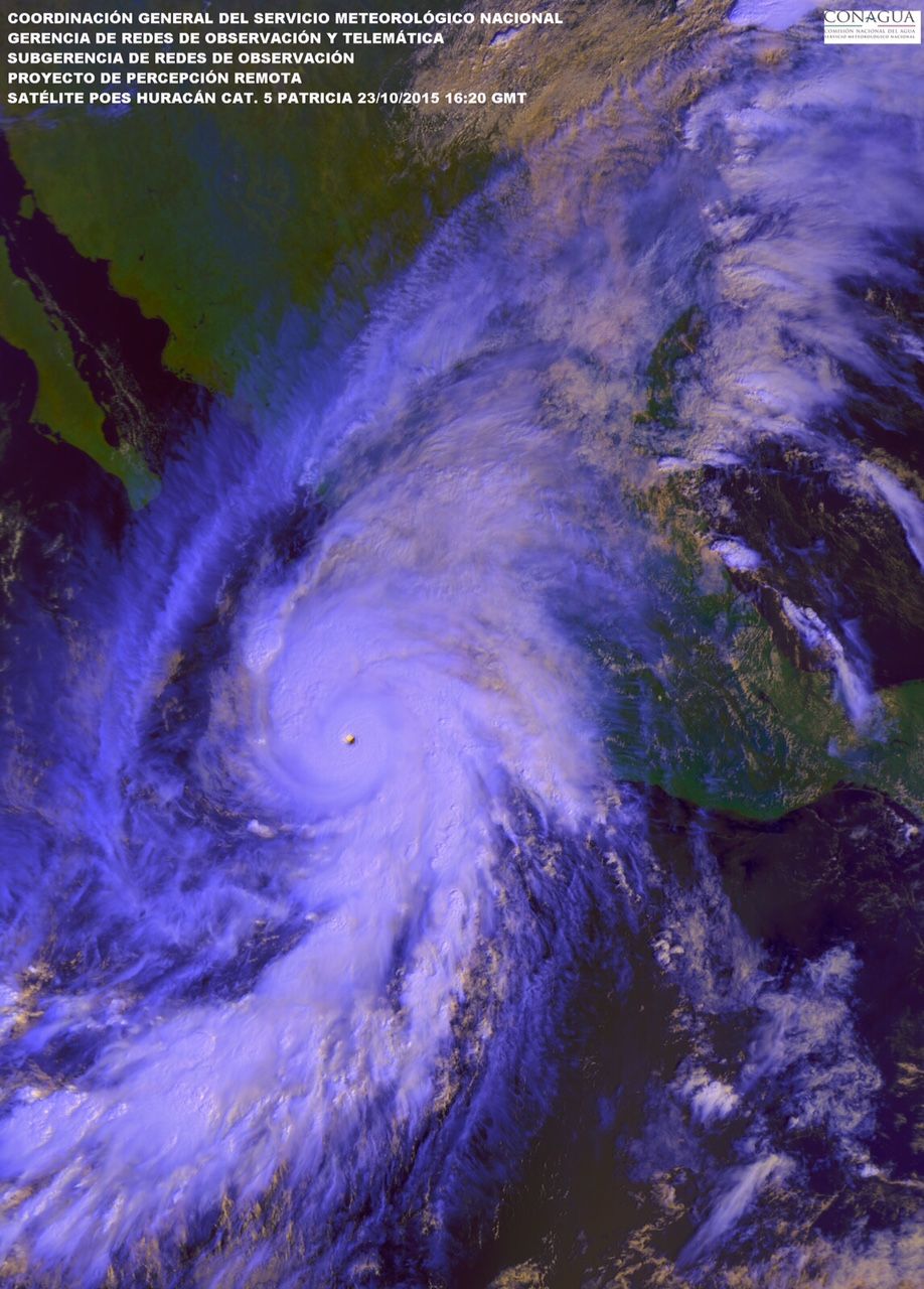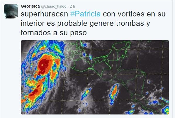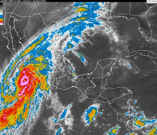Histórico huracán #Patricia: el + intenso del Pacífico nororiental jamás registrado -vientos 325kph -880mb (récord) pic.twitter.com/dRlSV8UEE2