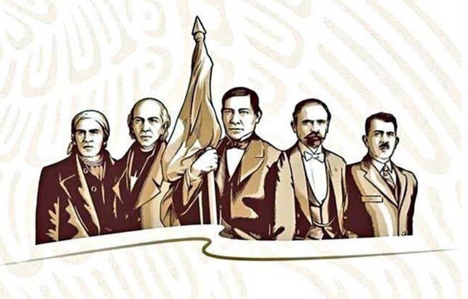 La imagen muestra a varios personajes importantes en la historia del país, como Benito Juárez, Lázaro Cárdenas y Miguel Hidalgo, entre otros