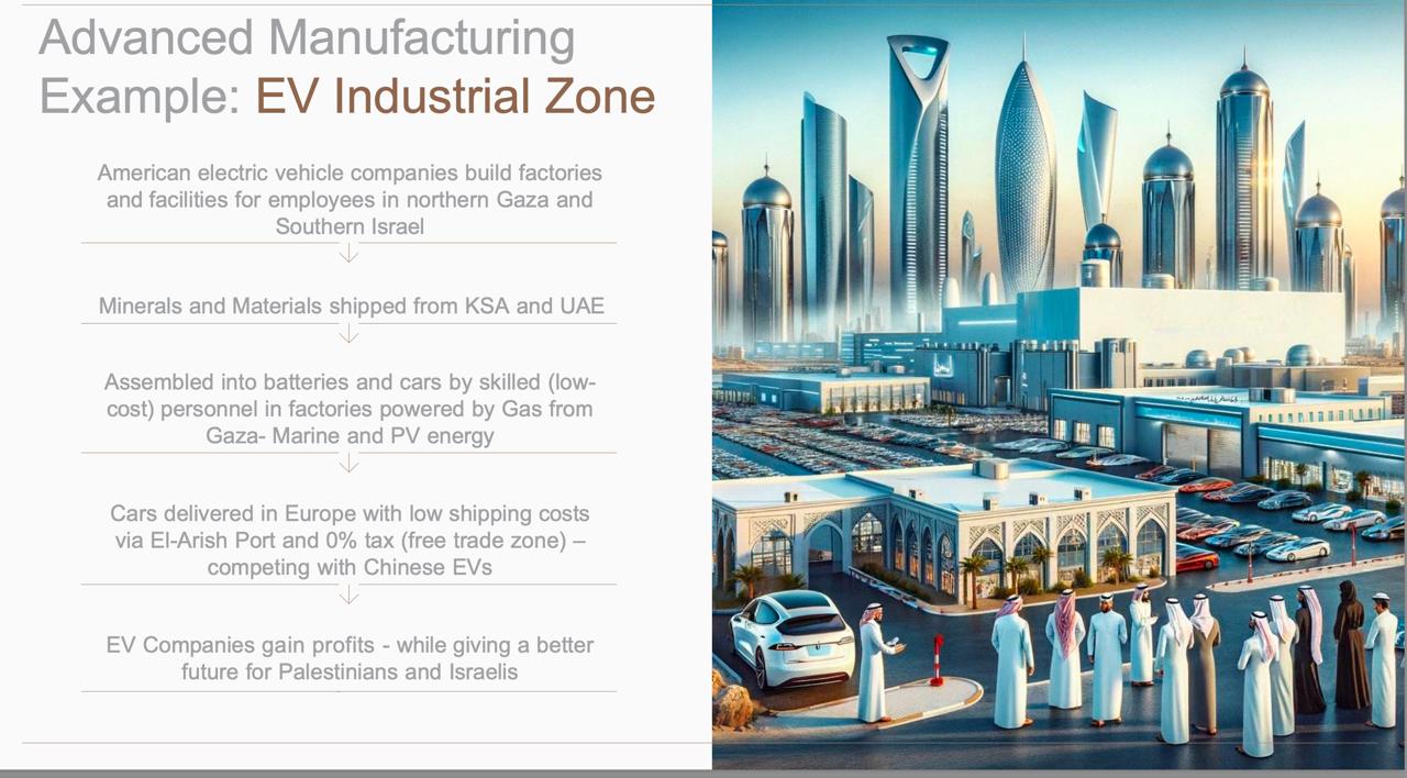 En una de las ciudades se instalaría una zona industrial con empresas de vehículos estadounidenses, plantas procesadoras de minerales raros, fabricación de baterías Tesla para vehículos eléctricos, para competir con armadoras de vehículos eléctricos chinos.