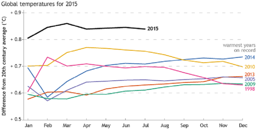 El 2015 fue el año más caluroso en la Tierra desde que se tiene registro, rompiendo la nueva marca que había sido impuesta apenas el año anterior, informo hoy la Administración Nacional Oceánica y Atmosférica (NOAA) de Estados Unidos.