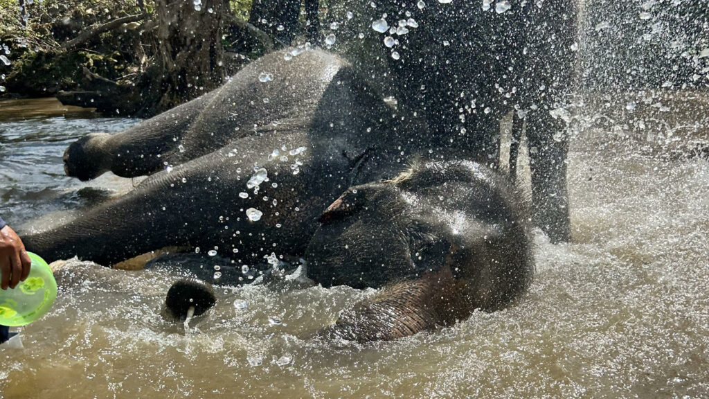 El baño con elefantes que ofrecen algunos centros es una actividad controvertida para atraer turistas en Tailandia, que algunas organizaciones denuncian que entraña riesgos al estresar a animales que pesan más de una tonelada y tienen una altísima sensibilidad.
